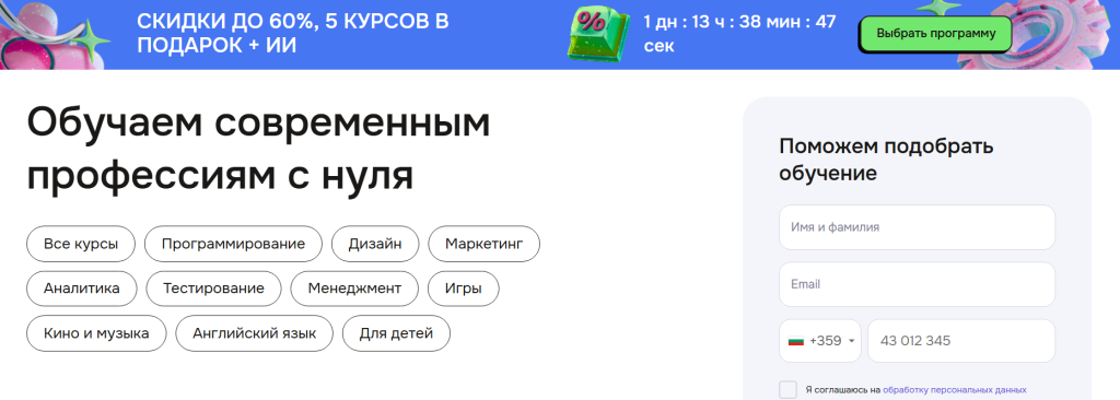 Иногда человеку не нужен курс на полгода, а порой достаточно трехдневного интенсива, поэтому разные форматы обучения это преимущество. На платформе встречаются: полноценные курсы, интенсивы, марафоны, мастер-классы, короткие обучающие программы.