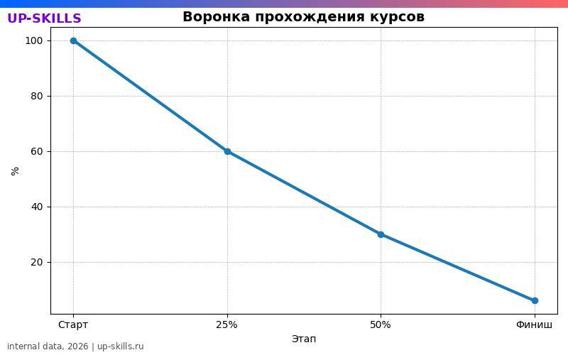 | Средняя завершаемость MOOC | около 6,5% | Интерес к обучению высокий, но доведение до результата остается слабым местом |
