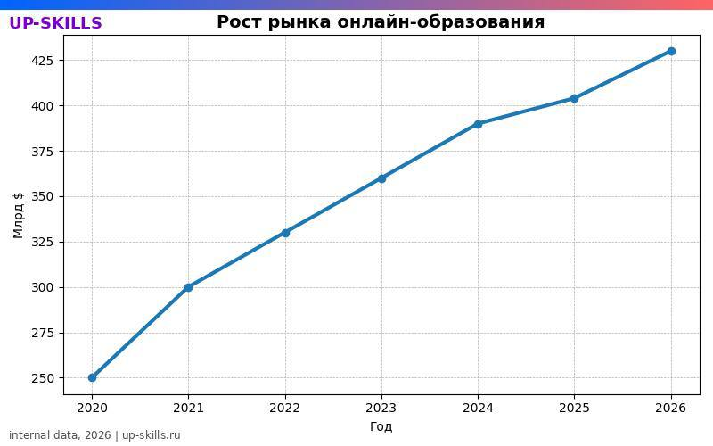 | Общий мировой рынок образования | $7,6 трлн | Онлайн-обучение растет внутри гигантской глобальной системы, а не в вакууме |
